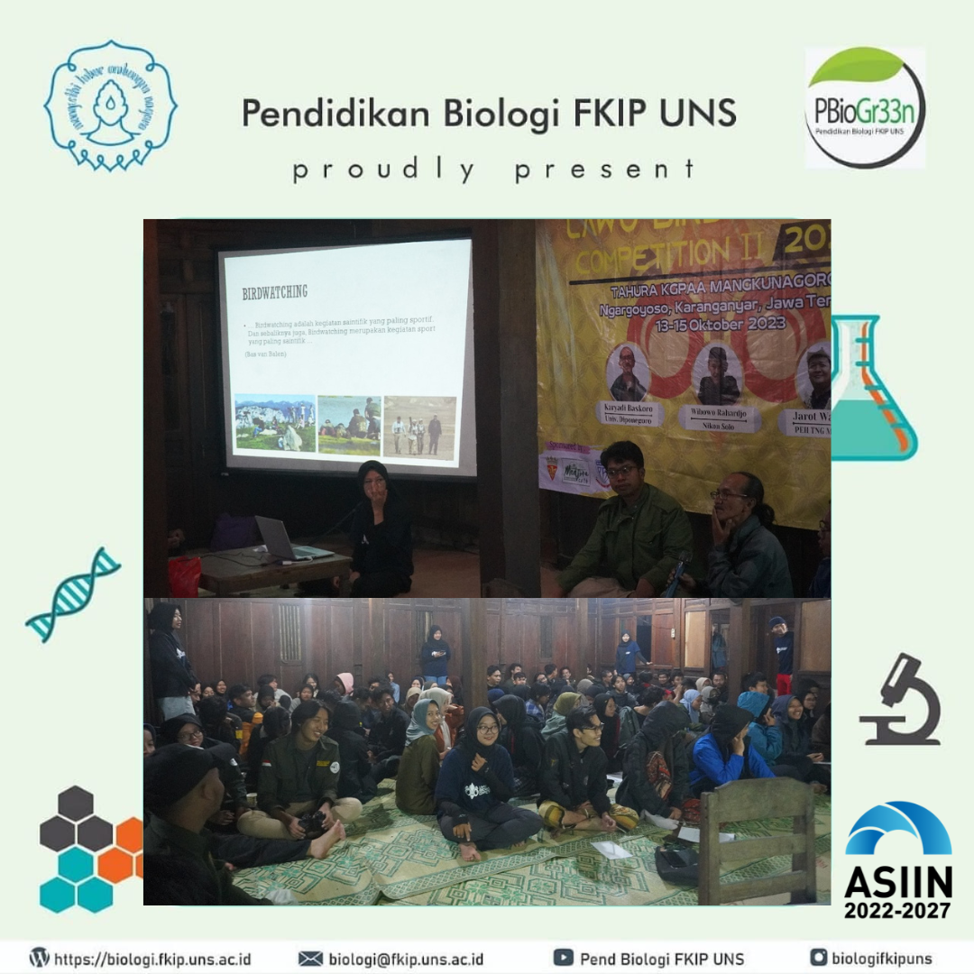 Tambak Halmet, Berjo Village, Ngargoyoso, Karanganyar became core attention of nature lovers when Lawu Birdwatching Competition II 2023. This event was delayed 4 years ago because pandemic covid-19 and this year held by bird watching group “ALBATROS” Biology Education Faculty Teaching and Learning Sebelas Maret University in collaboration with study group “Kepak Sayap” FMIPA Sebelas Maret University and TAHURA KGPAA Mangkunagoro I, was successfully on Friday-Sunday, 13-15 October 2023. This event started at 1:00 p.m. and was attended by 93 participants from various community groups, including students to professional nature lovers that so excited to join this competition. Participants gather in G Building FKIP UNS and leave together to Tambak Halmet.