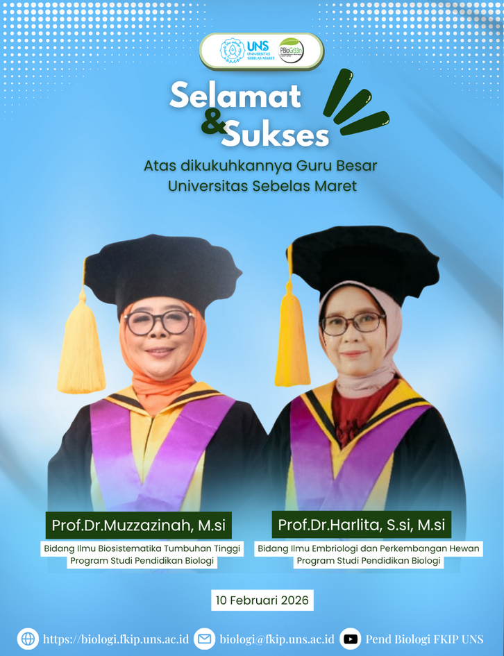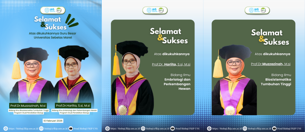 “A full professor is the highest symbol of academic integrity,” noted the university leadership. “With Prof. Muzzazinah and Prof. Harlita, the Biology Education program is now better equipped to develop innovative learning models and high-impact research that competes on an international scale.”